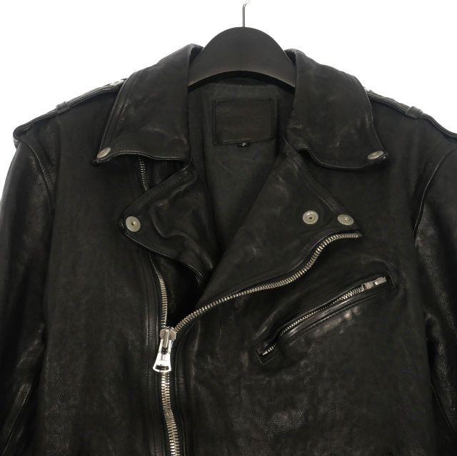 イサムカタヤマバックラッシュ ISAMU JAPAN CALF NATURAL DYED GARMENT-WASH ダブルライダース ジャケット ブルゾン L ブラック 黒 1927-07