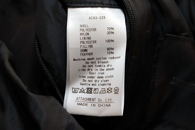 アタッチメント 19 AW Pe Ny HOODED DOWN COAT BLACK SIZE 2 AC 93-228 ピーチスキン フーデッド ダウン コート ブラック ブランド古着ベクトル 251025