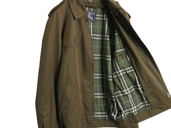 80 s イギリス製 バーバリー プローサム ショート トレンチ ジャケット メンズ L 程 ヴィンテージ 旧タグ ジャンパー ブルゾン オリーブ