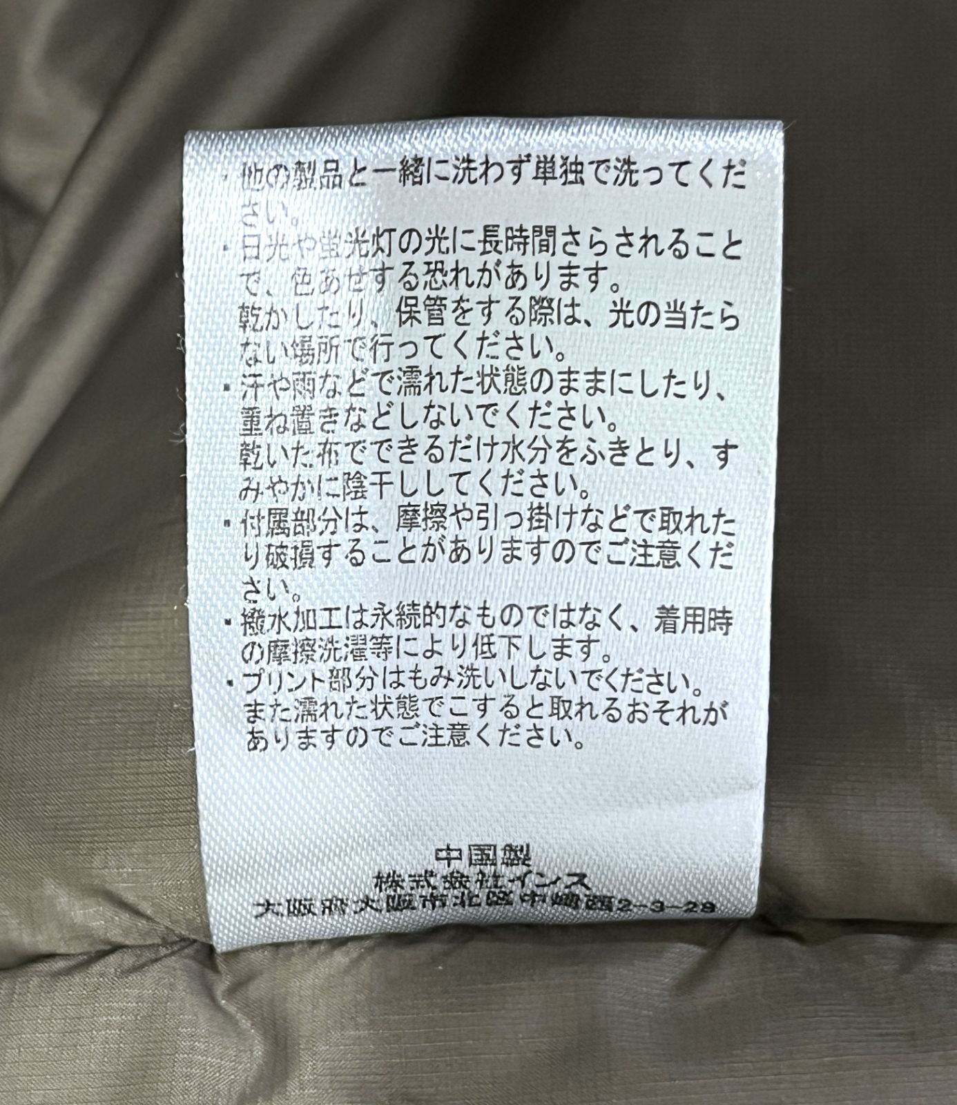素材:(表地)ナイロン100%、(裏地)ナイロン100%、(中わた)ポリエステル100%
