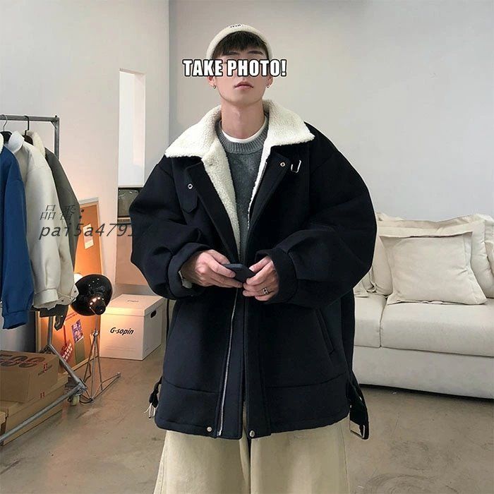 ジャケット メンズ 冬 裏ボア ラシャコート ラシャジャケット フリースジャケット ジップアップ ボアジャケット ボア コート アウター ブルゾン もこもこ 大きいサイズ ゆったり おしゃれ 折り襟 裏ボア ファー 裏起毛 厚手 暖かい 防寒 防風 無地 シンプル S M L XL 2XL