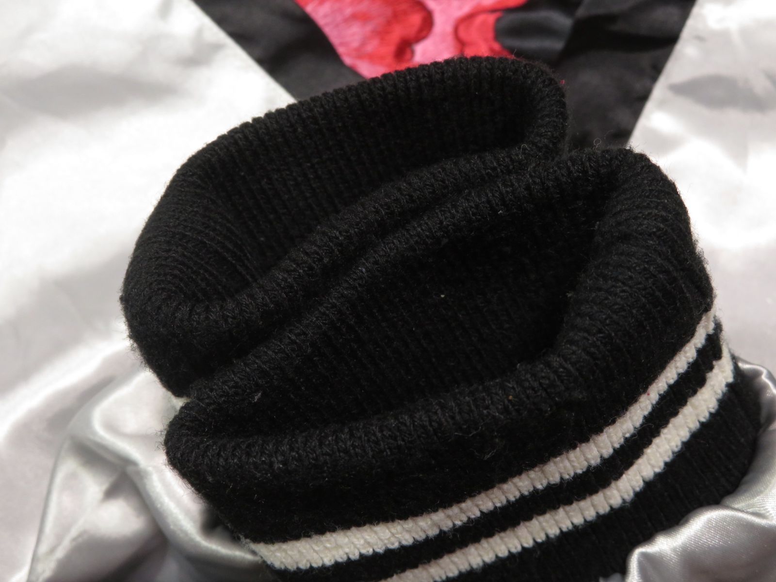 ・小さな刺繍のほつれ、細かいリブの毛玉感、薄い香水のようなニオイ