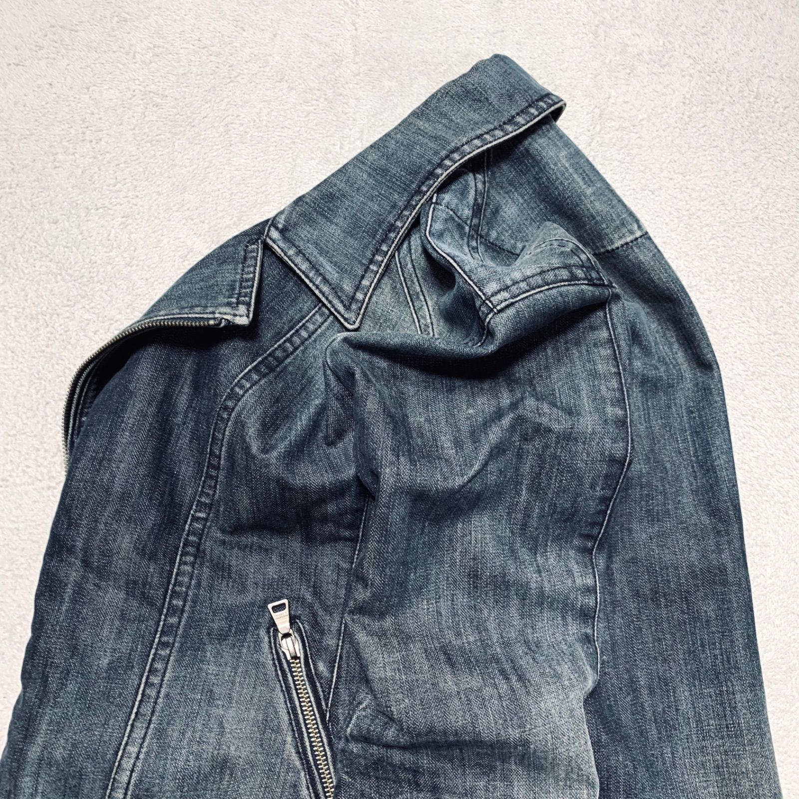 BURBERRY BLACK LABEL デニムジャケット ライダースジャケット ダブル ノバチェック ロゴ刻印 ヴィンテージ加工 ウォッシュ加工 フェード Mサイズ インディゴブルー 青系 バーバリーブラックレーベル