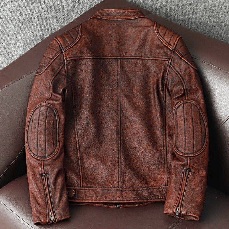 h メンズ 本革 レザージャケット 牛革 短丈 立ち襟 ヴィンテージ風 石磨き加工 修身フィット バイカージャケット 春秋 S-6 XL
