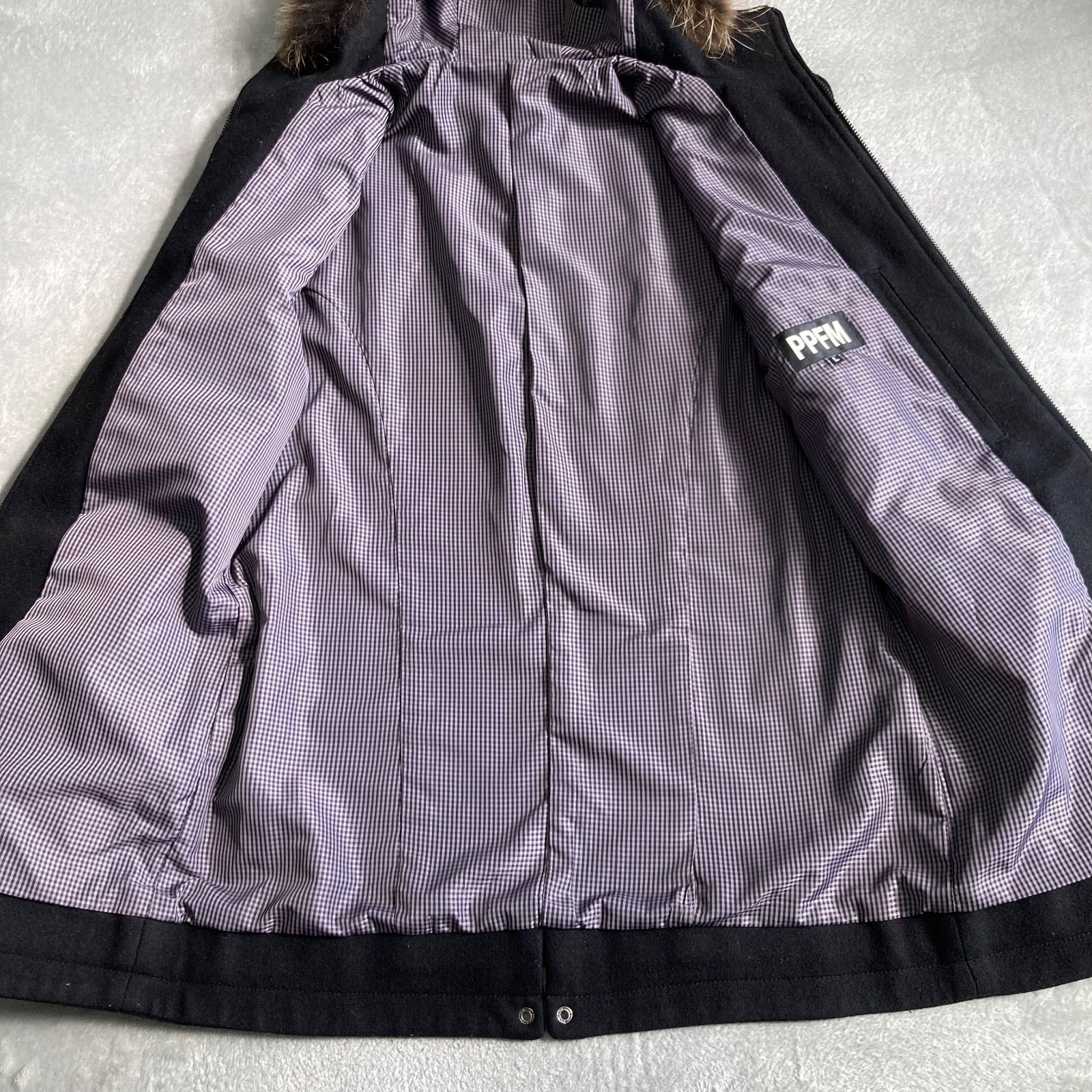 PPFM ファー付き ダッフルコート ブラック Lサイズ