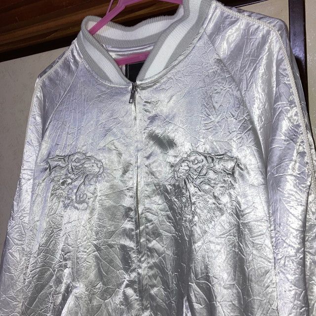 unrelaxing アンリラクシング スカジャン シワ加工 虎柄 刺繍 japan シルバー ホワイト