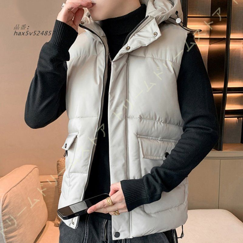 メンズ 中綿ベスト 冬 ベスト 防寒 チョッキ スリム ノースリーブ 中綿 フード付き 保温性 ダウンコート アウター 暖かい 袖なしジャケット 無地 hax 5 v 524857