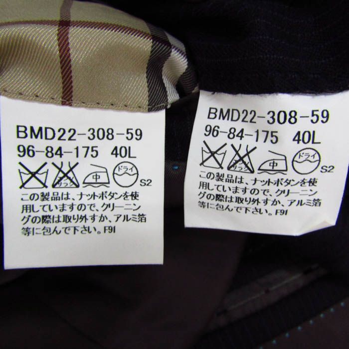 バーバリーブラックレーベル スーツ セットアップ 上下セット メンズ 96-84-175 40 Lサイズ ネイビー BURBERRY BLACK LABEL