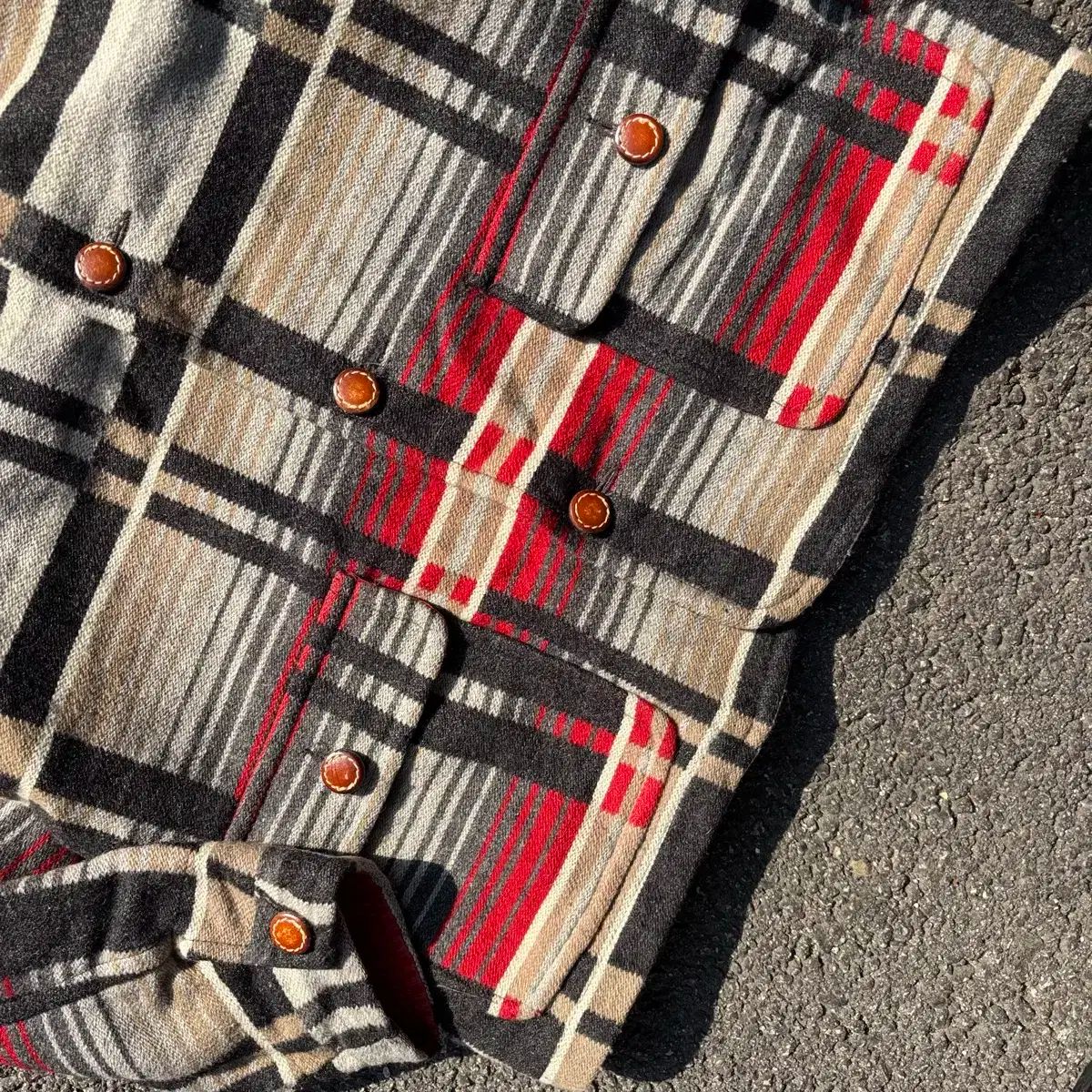 ヴィンテージながらもエレガントな魅力を放つ90年代イタリア製 BENETTON エスニック パータン コートです。厚手でぽかぽかしたウール 生地で製作されており、優れた保温性を誇ります。強烈なレッド、ブラック、暖かい ベージュ/グレー トーンが調和して織りなされたエスニック プラッド パータンが、ユニークで高級感のある雰囲気を演出します。ゆったりした 105 サイズで快適に着用可能で、カラーの内側のレッド キルティング 裏地が見える ディテールは、おしゃれさを加えてくれます。
