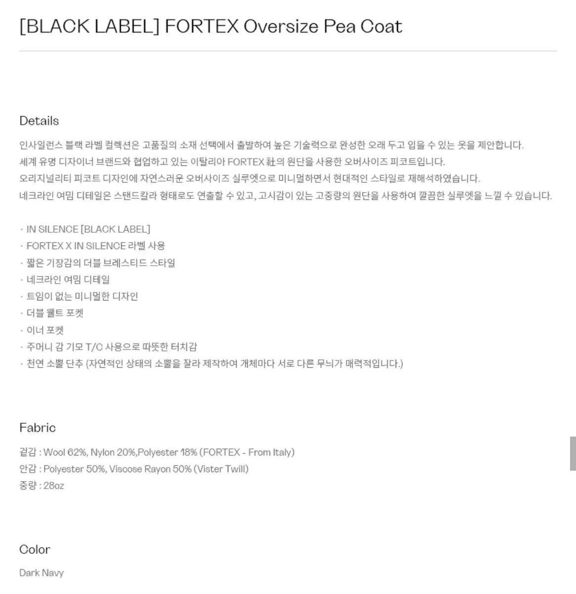 インサイレンス fortex オーバ ピーコート ネイビー M 105