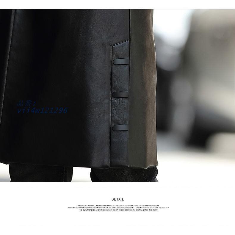 秋冬 ロング丈コート レザーコート 二つボタン ライダース PU フェイクファー付き メンズ 革 中綿 アウター vii 4 w 121296