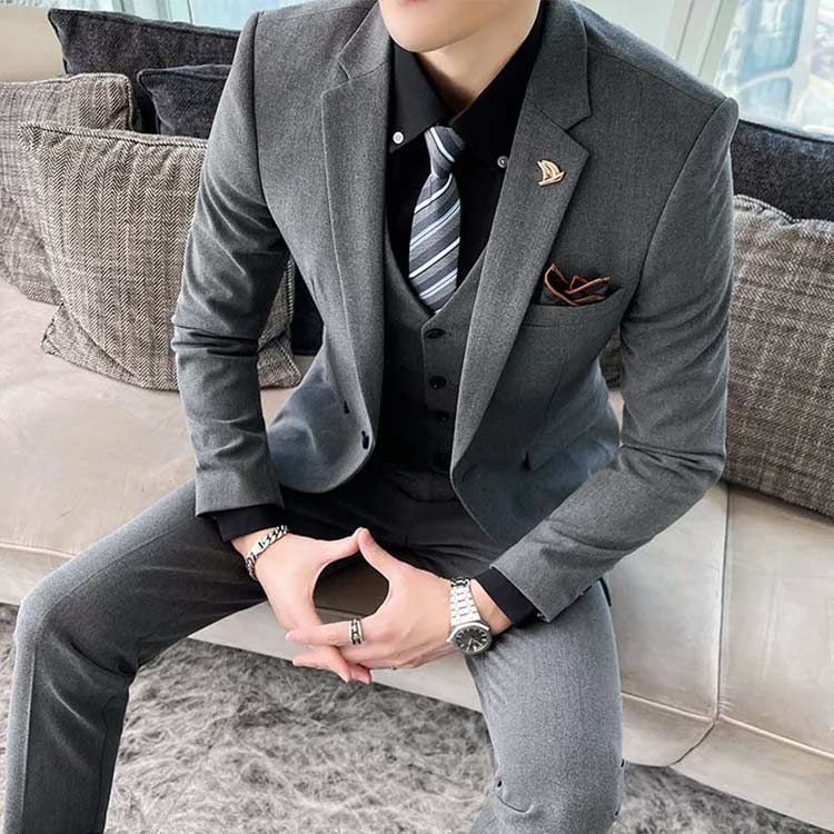 【ジャケット+パンツ+ベスト】の3点セット。【M-5XL】【全4色】