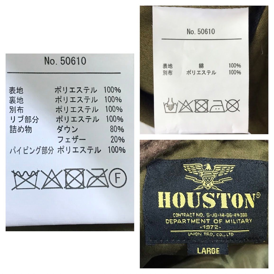 HOUSTON ヒューストン ミリタリージャケット WAY N-1 ダウンジャケット 50610 オリーブ サイズ L 93