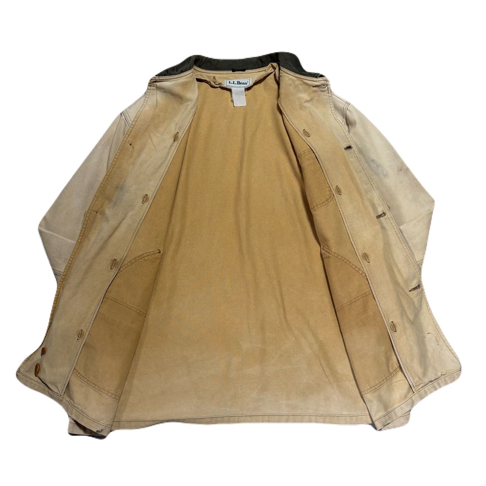 LLBean エルエルビーン HuntingJacket ハンティングジャケット Coveralls カバーオール Work ワーク DuckFabric ダック生地 80 s CorduroyCollar Fade Ivory アイボリー XXLサイズ相当