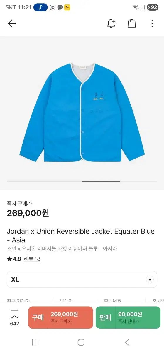 ジョーダン ユニオン コラボ リバーシブル ジャケット XLサイズです。リバーシブルで着用できるため、活用度が高いです。今の気候にちょうど良い厚みです。コメントがなければ、すぐにお支払いください!