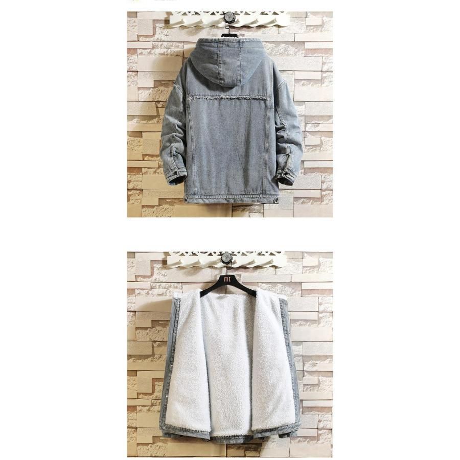 デニムジャケット メンズ ジャケット 冬服 裏起毛 裏ボア フード付き あったか 防寒 秋冬着 アウター デニム オシャレ ギフト 通学goodplus205
