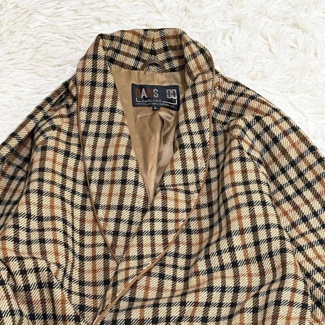 DAKS ガウンウールロングコート L チェックブラウン