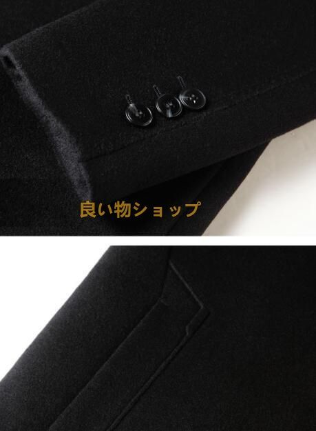 ビジネスコート チェスターコート 中綿 グースダウンジャケット ウールコート ロングコート 超防寒 厚手 立ち襟 ブラックM 4 XL