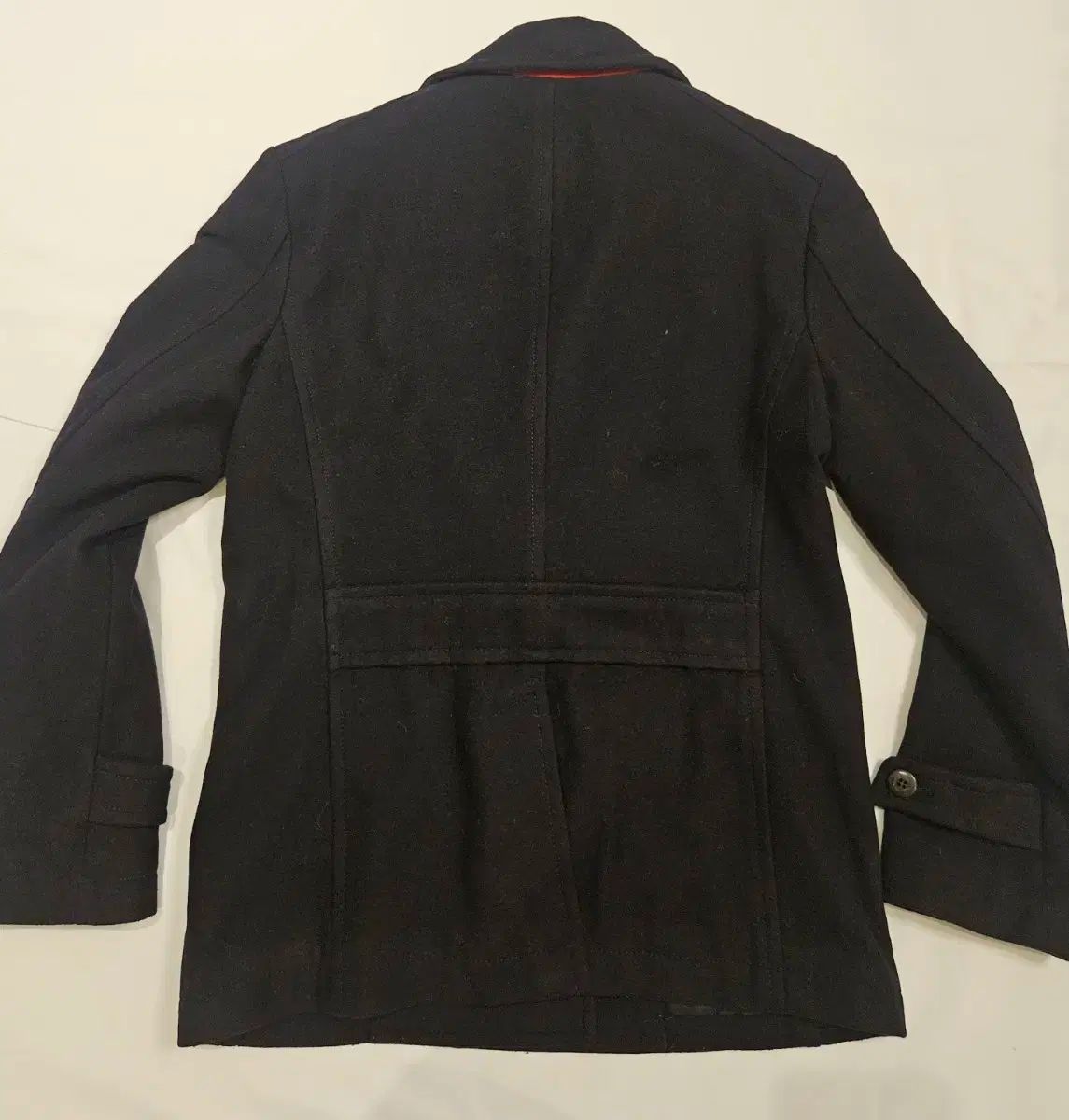 HAZZYS へジス ダブル ブレスト ピーコート サイズ100です。基本的な黒カラーに、ウィットのあるカラーの当て布カラーでちょっとしたPOINTがあります。裏地にも内ポケットがあり、活用性も良く、全体的に良いコンディション維持中です。コメントがなければ、すぐ安全決済してください!