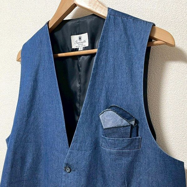 ◎商品名(タイトル):#anc ジャンネット giannetta ベスト・ジレ 54 紺 デニム調 ポケットチーフ付き イタリア製 美品 メンズ [959329]