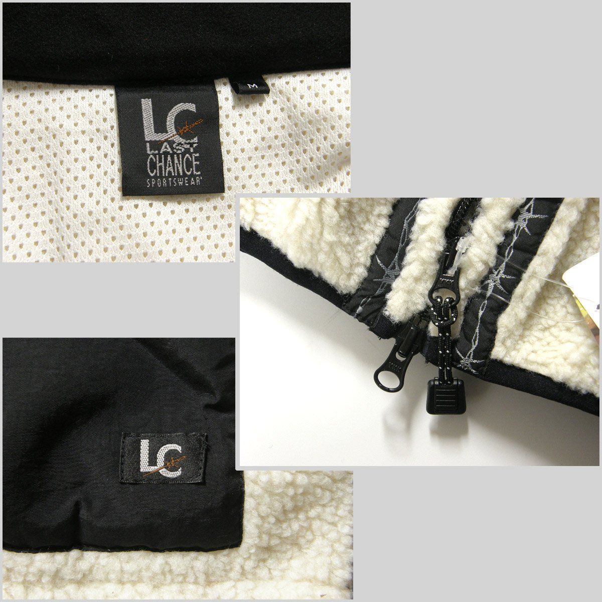 LAST CHANCE SPORTSWEAR ラストチャンス スポーツウェア 有刺鉄線 ボア フリース ベスト ダブルジップ バーブドワイヤー ボアフリース シープボア 白 オフホワイト 黒 ブラック エクストリームスポーツ | 秋冬