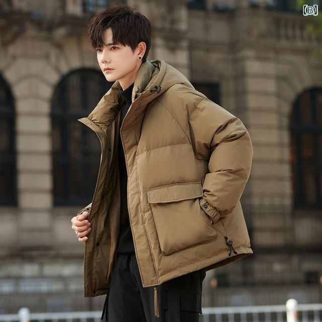 2 XL 秋冬 コーデ メンズ 服 シンプル ファッション オシャレ 大人 かっこいい 大きいサイズ ストリート 紳士服 冬 ホワイトダックダウン フード付き ダウン ジャケット 暖かい 厚手 防寒
