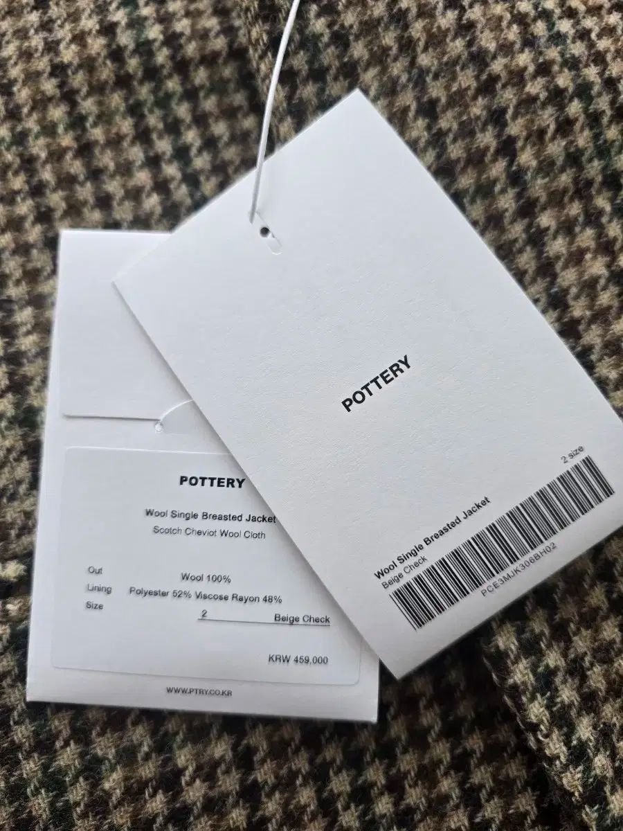 ポッタリー ウール シングル ブレスト ジャケットです。タグ付き 新品 で、高級感のある チェック パータンが目を引きます。クラシックな デザイン で、様々な スタイル に合わせやすいです。
